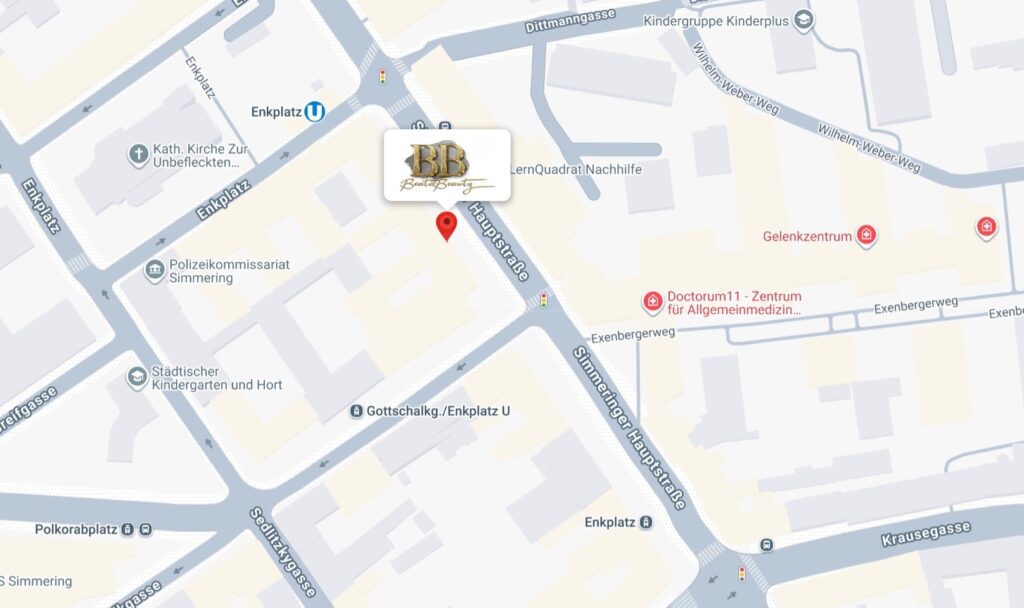 Der Schönheitssalon befindet sich im Aktivital Simmering im Innenhof, 2 Minuten von der U3-Station Enkplatz entfernt.